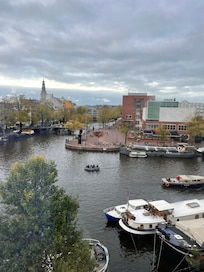 Lejlighedshotel ved en flod i Amsterdam, med en døgnåben reception