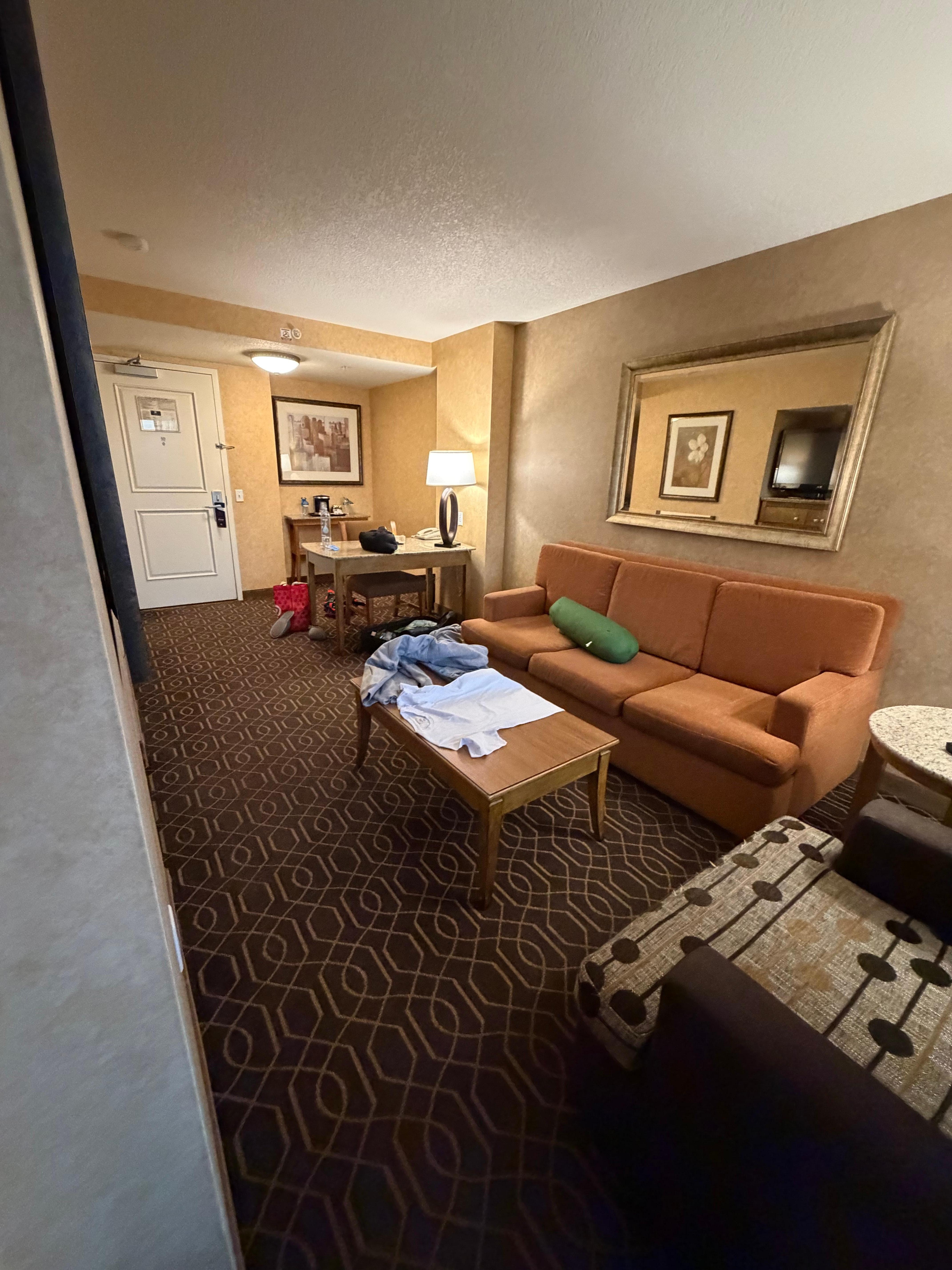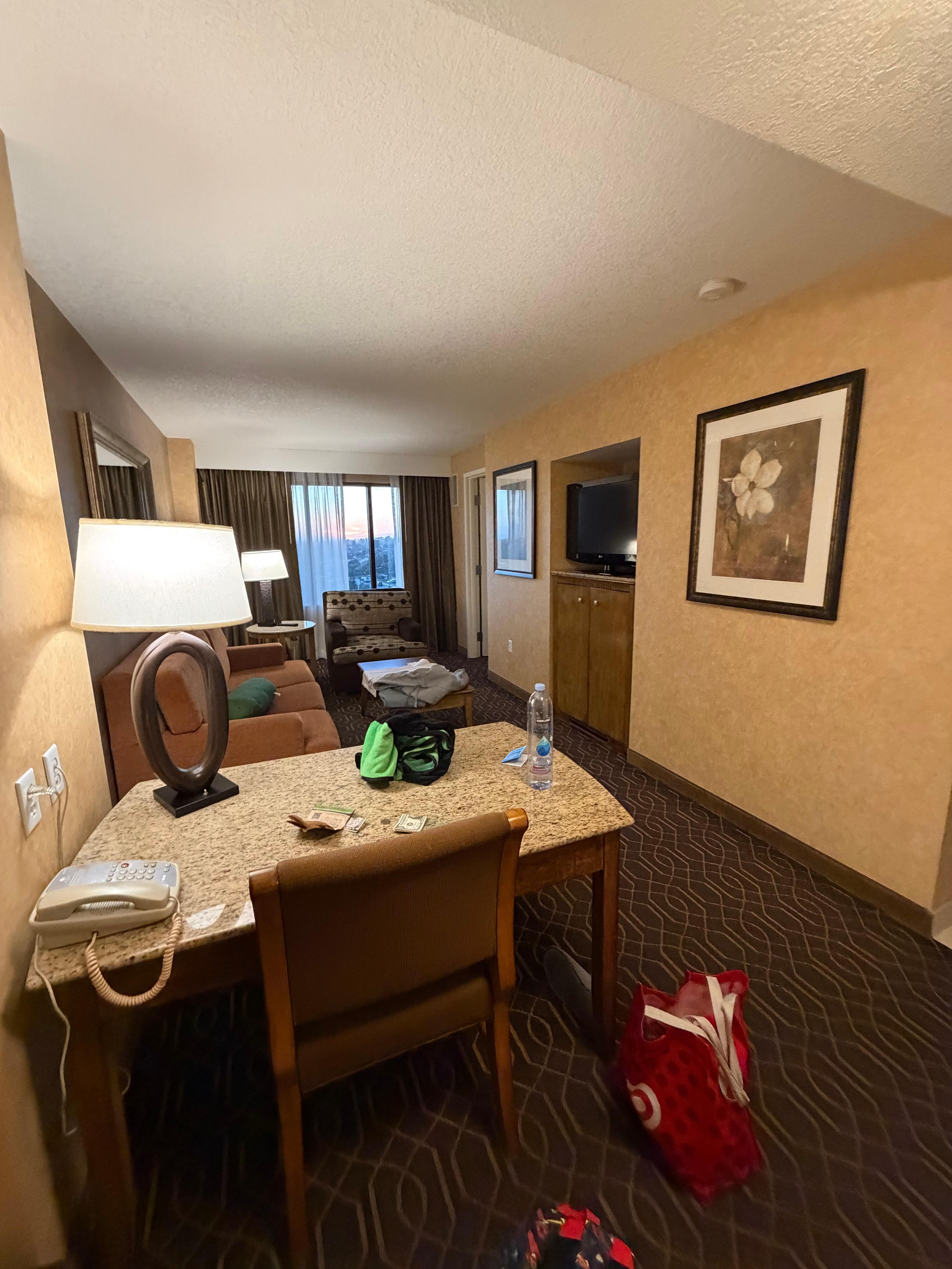 We stayed at DoubleTree Suites by Hilton Anaheim for four nights and overall had a good experience. The hotel is definitely a bit dated, and the rooms could use some upgrades—especially the couch, which looked like it had seen better days. That said, everything was clean and comfortable enough for our stay.