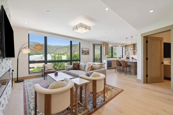 Guests will enjoy mountain views from the outdoor terrace (with BBQ), as well as accessing the on-site pool, spa pools and rooftop bar. The Westin Riverfront’s world-class amenities, including a pool, hot tubs, fitness facilities, fire pit and ski valet are also available, as is complimentary shuttle service to/from Beaver Creek. One Riverfront delivers 100% renewable energy to ensure efficiency and minimize the building’s carbon footprint.