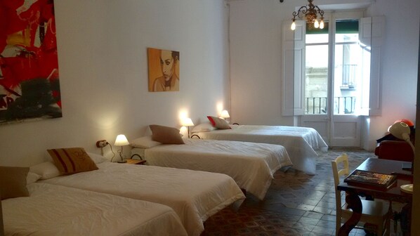 Huset har tre soveværelser, to dobbeltværelser med store senge på 180x200mts, og en tredjedel større for grupper, med fire enkeltsenge på 90x200mts. Alt udvendigt og med deres respektive badeværelser.