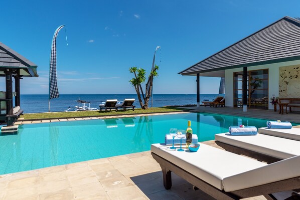 Villa Bidadari, beachfront, 3 Bedrooms w/ensuite baths, private pool and staff