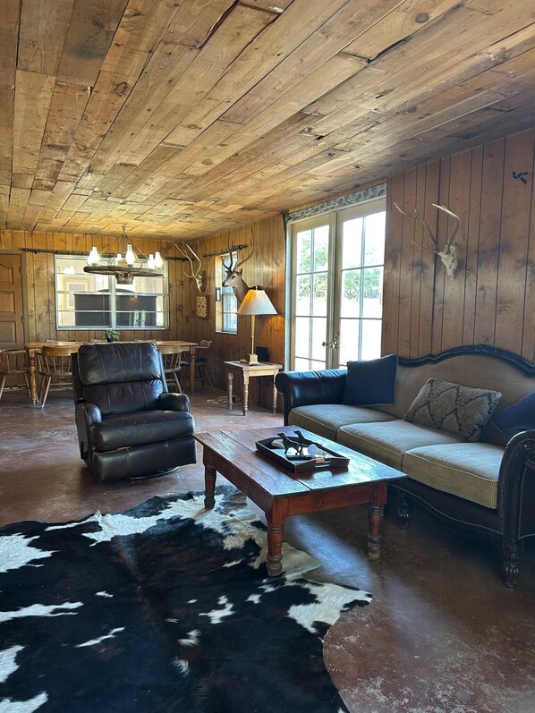 Our family of five traveled to this beautiful property for the week of Thanksgiving. All of us, from the senior citizens in their mid-80's to the 14 year old girls absolutely fell in love with it. It is a well-loved family ranch/hunting camp on a very large property with all the conveniences of home. If you are looking for something fancy and new, it is not for you. If you are looking for an real place where generations of kids have played, people have cooked delicious meals and eaten them together as a family, and an outdoor experience that cannot be beat, then this is the place for you! The house is of a cabin/camp flavor and is of an older vintage in both age and decor - if you are looking for fancy, look elsewhere. However, there is a big tv, new stove/oven/microwave, excellent climate control, every appliance you might need. The beds are exceptionally comfortable! Water pressure - A+. What cannot be overstated is the incredible beauty of the setting. Just the walk to the river alone is worth the price of admission. There are animals everywhere - deer, rabbits, wild turkeys, doves and more. Along the river you can find fossils, jasper, banded chert for the rock tumbler and more. We had so much fun in the kayaks. Owner was extremely easy to reach, kind, friendly, helpful - everything you could want. This is a six hour drive for us, but we will totally go back. Remember that for the price you are not just getting the house - it is a whole ranch!