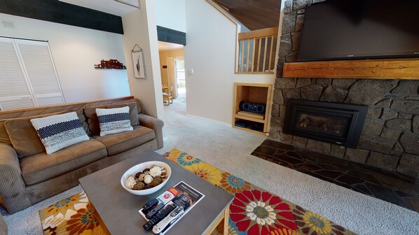 • Comfortable living room with TV and large gas fireplace