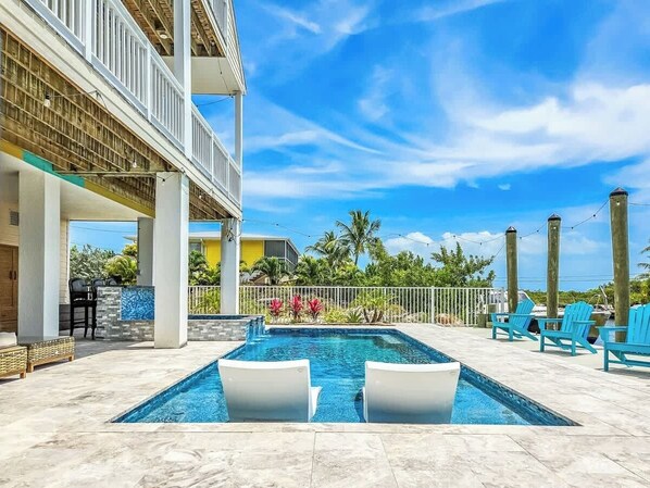 Gorgeous pool, big dock & easy ocean access from this 5 bed/4 bath home on Big Pine Key