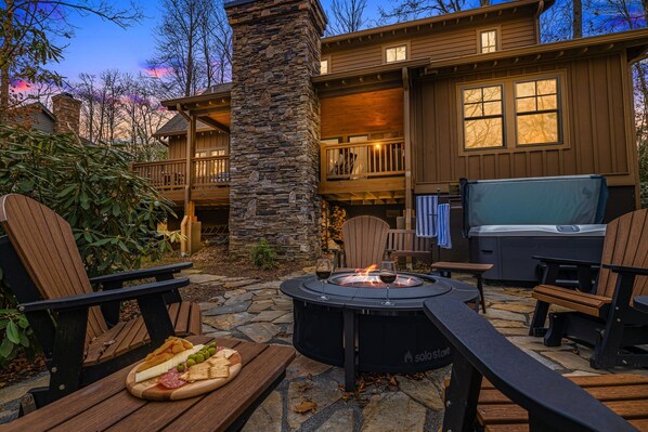 Expansive deck with outdoor fireplace and dining seating (firewood provided!)