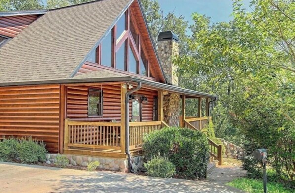 Tranquility Meets Comfort From the moment you arrive, you'll feel the calm settle in. Huge glass windows flood the open living space with natural light, offering mountain views of the Blue Ridge Mountains and surrounding forest. Whether you're curled up by the indoor stone wood burning fireplace or reading a book on the covered porch swing, peace is always within reach.