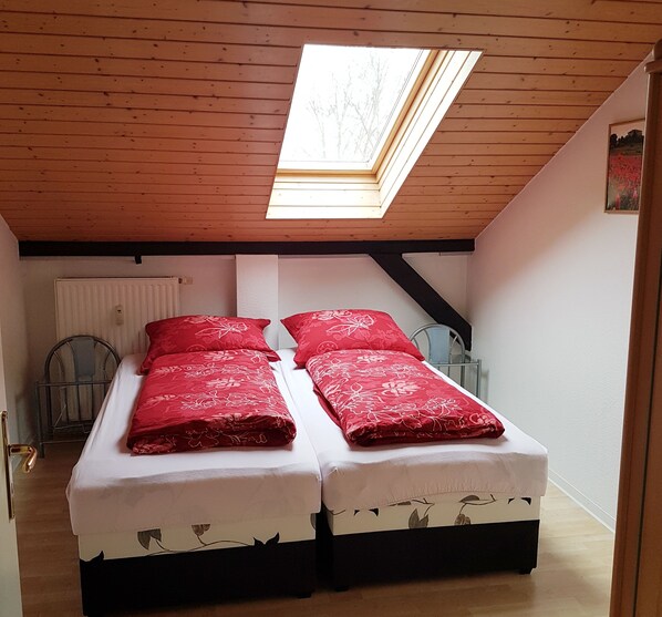 Børneværelset med dets to enkeltsenge, to separate skabe og en kommode tilbyder et lille, men hyggeligt tilflugtssted for dine børn eller andre medrejsende.
