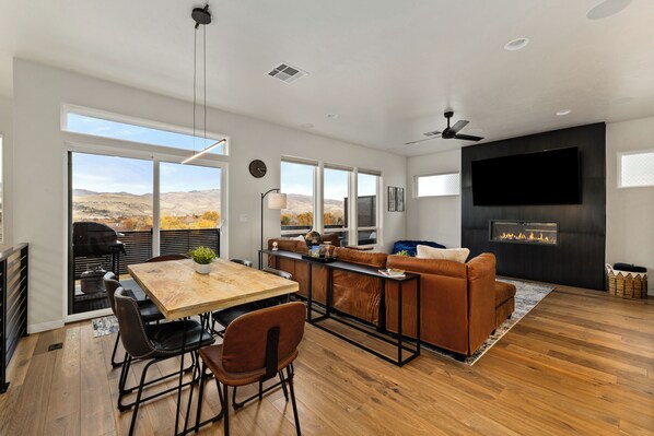 Wake up to breathtaking Boise foothill views in this bright, modern 3-bedroom townhome located in the exclusive Echelon Ridge community. Perfect for families, couples, group getaways, or remote work. This retreat features a private hot tub, fire pit, chef’s kitchen, games, and high-end finishes throughout. Located just minutes from Downtown Boise, Boise State University, Lucky Peak State Park, and the Boise River Greenbelt, you’ll enjoy the perfect balance of luxury, adventure, and relaxation.