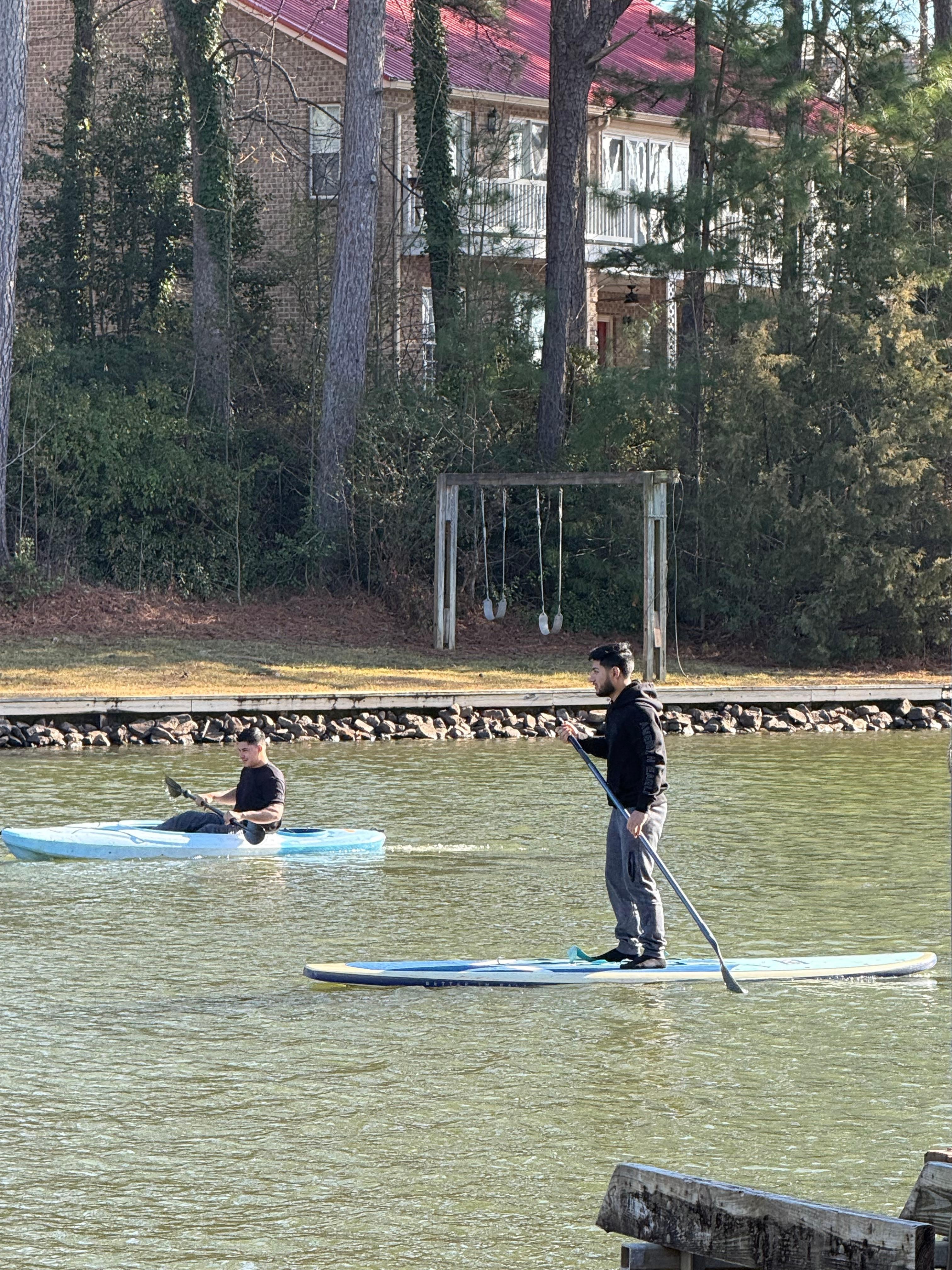 Har du noget vandlegetøj? Vi tilbyder en 2 person peddle båd og 2 flytende liggestole. Vi har 2 stand up paddle boards rådighed til leje, omkostninger er $ 150 for en og $ 275 for begge. De er 10'8 "Isle brædder med justerbare padler.