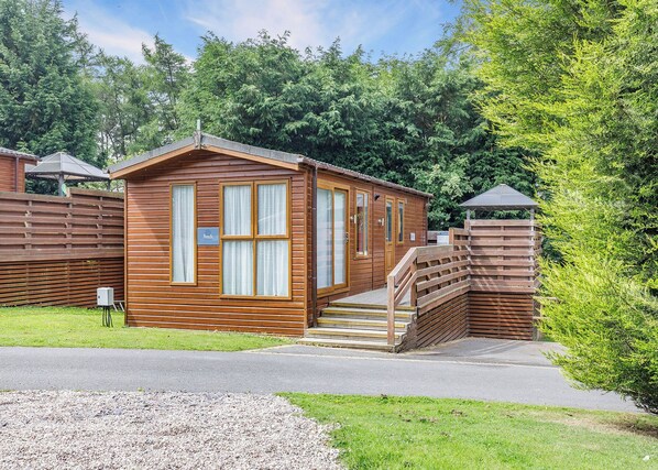 Luxury one-bedroom lodge style holiday home with hot tub. King-size bedroom and en suite shower. Bed made up for your arrival in crisp linen and towels are provided. open-plan living area. well-equipped kitchen with microwave, fridge/freezer, Nespresso pod coffee machine, tumble dryer and washing machine. Central heating. Covered outdoor hot tub on private furnished veranda. BBQ available on request. No pets. Free Wi-Fi and free parking.