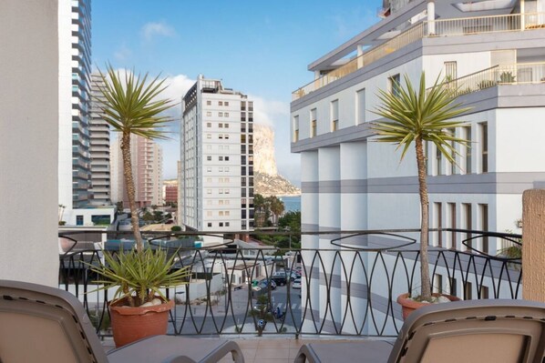 Det indvendige rum: Vågn hver dag til havets syn fra hvert af penthouse's lyse fyldte dobbeltværelser. Begge værelser har deres egen lille balkon, og hovedsoveværelset giver også adgang til hovedterrassen. Gå udenfor og nyd en kystbrise og et glimt af den klippefyldte omrids af Peñon de Ifach i det fjerne.