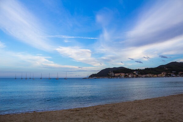 I stuen er der to sovesofaer, et tv og et stort fransk vindue med udsigt over bugten Marina di Campo. Lejligheden har også en overdækket parkeringsplads, privat jord bagpå, en plads til fælles med de andre lejligheder til tørring af tøjvask.