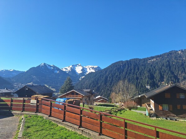 The apartment is on the ground floor in Petit Châtel, close to a bakery, ski lift, ski rental shop, and laundromat. Please note: the sleeping arrangements are best suited for families or close friends due to the shared space.