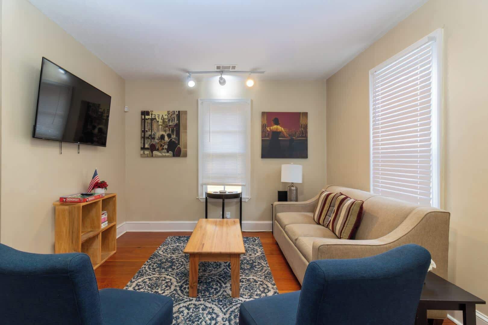 Experience the best of Columbus in this beautifully renovated apartment. Step inside to find a cozy and stylish living space, with all the amenities you need for a comfortable stay. The kitchen is fully equipped with modern appliances and quartz countertops, perfect for preparing delicious meals. Relax in the comfortable living room and enjoy your favorite shows on the smart TV. Head to the bedrooms and sink into the luxurious Serta mattresses with Vera Wang bedding.