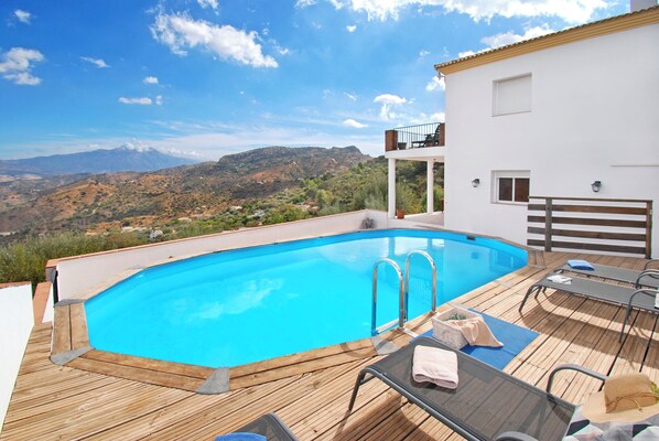 Dejligt rummeligt, lyst og moderne feriehus med pool og betagende udsigt