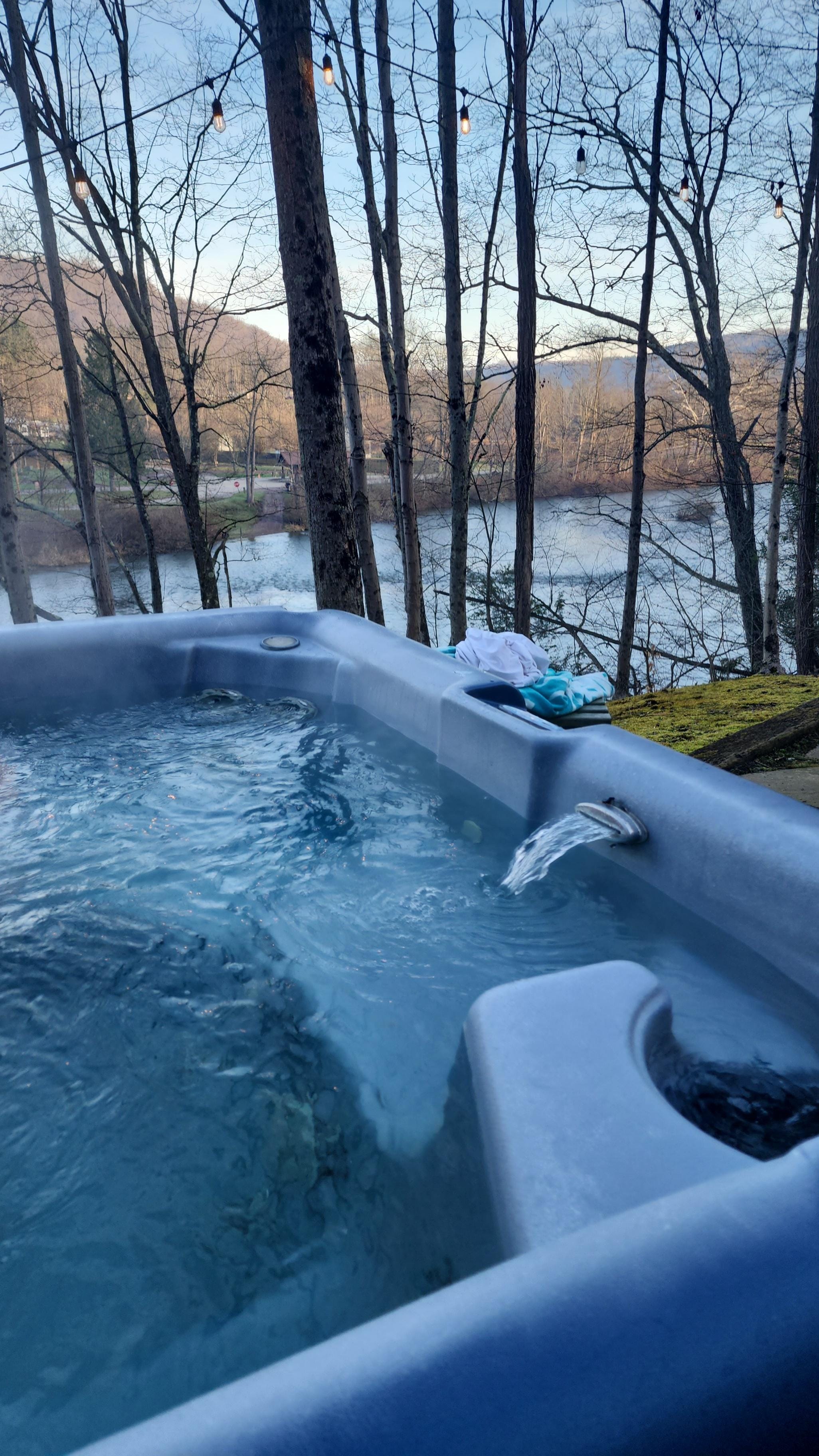 Nyd det naturlige skønhed i området, der slapper af på vores rummelige dæk med udsigt over floden. Lyt efter gæs, ænder og andre fugle, mens du blødgør det afsondrede boblebad. Flyvefisk efter ørreder i de velassorterede halevand i dæmningen i vores baghave. Se efter hegre, fiskeørn, eller hvis du er heldig, er den skaldede ørn.