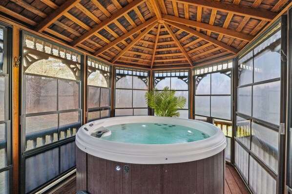 Landejendom med familievenlig profil og med en udendørs pool og et boblebad