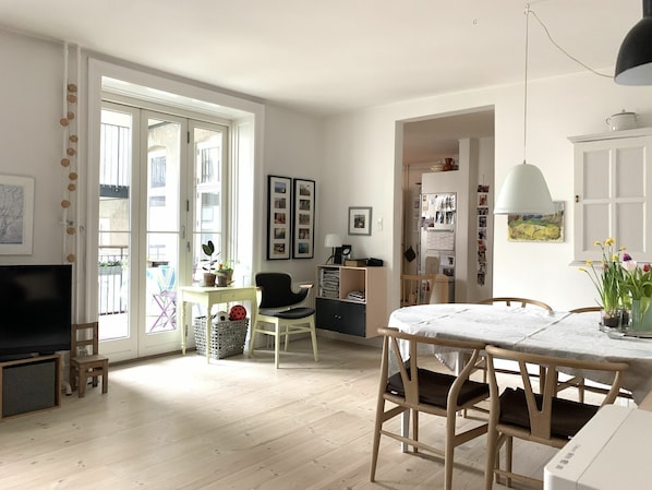 Dejlig lejlighed ved de Københavnske Søer, Copenhagen Food Market og Nørreport station. Lejligheden har stor, sydvendt altan mod lys, grøn gård med 1 soveværelse og kan rumme 2 voksne. God lejlighed og god beliggenhed.