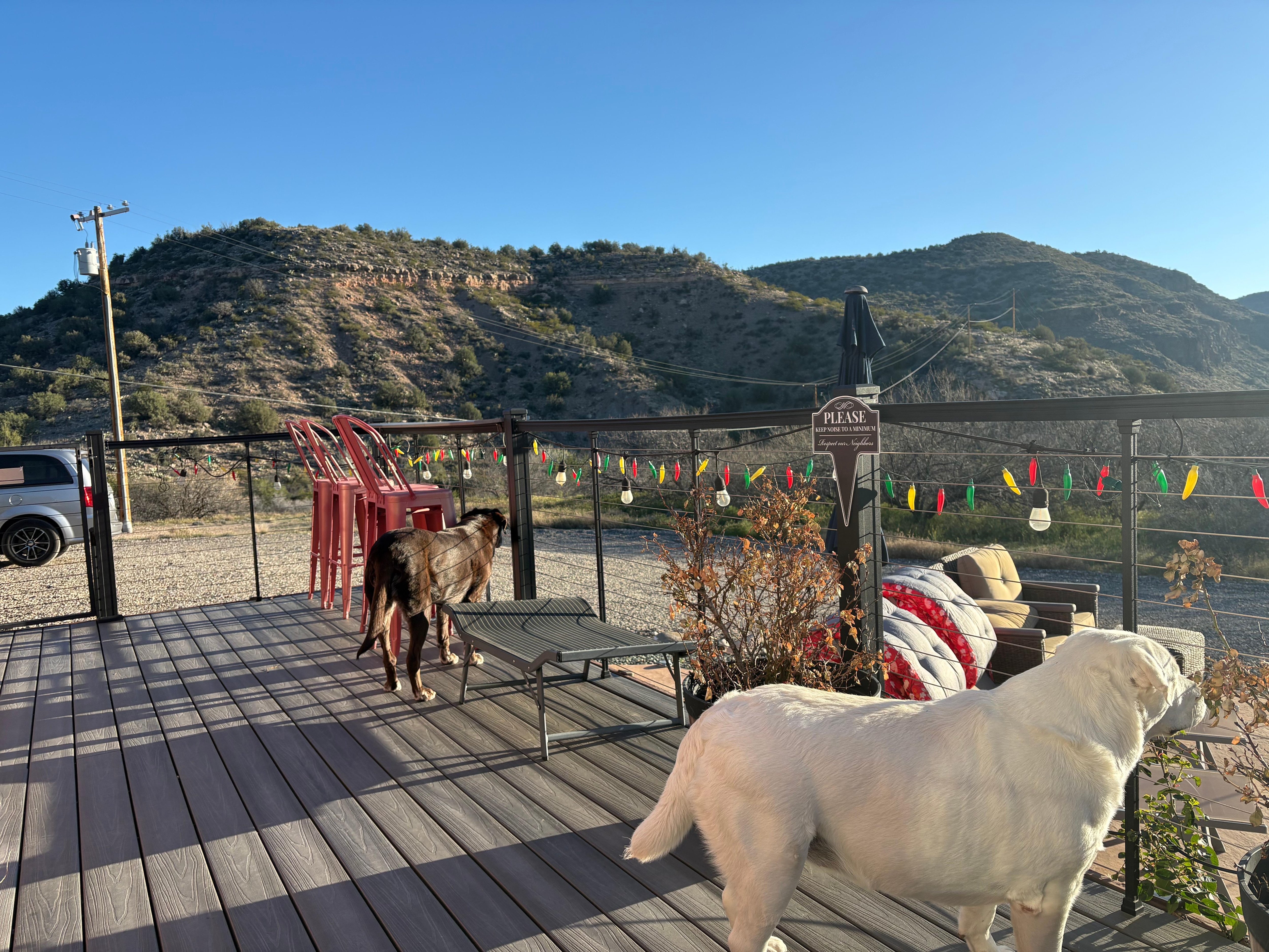 We spent 3 amazing weeks at the incredible Cowboys and Roses property. As soon as you walk in the door, you will see that all is exactly as pictured. As you spend time there, you discover the myriad of functional and exciting details that will continually delight you. Everything you need and more for a short or longer term stay has been thoughtfully provided. In 3 weeks, we didn’t have enough time to enjoy every space and amenity that was present on the property. Our dog Gracie loved to roam in the fenced backyard while we ate in the gazebo, lounged in the hammock, or played horseshoes. She was safe on the front fenced deck as we star gazed from the hot tub. We were lucky to meet Brian and his dog Tuff at a local trail, and swimming with Tuff in the creek was the highlight of Gracie’s entire trip. The games room was so much fun, and we especially enjoyed and appreciated it on the few times we had inclement weather. C and R is located in a peaceful, gorgeous valley. The location between Sedona and Cottonwood/Jerome is ideal for accessing hiking trails, restaurants, groceries, etc. We enjoyed wine tasting at multiple wineries that are located within minutes of the property. Following our first communication from Brian, Gregg said,” I really like this guy!” Brian is warm, friendly, and very quick in responding to inquiries. He was so generous with his information and knowledge about all kinds of things in the area. Don’t hesitate to experience Cowboys and Roses!