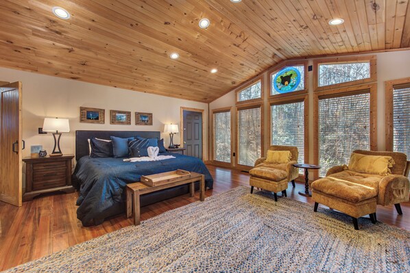 Sit back and relax on the front porch, complete with rocking chairs. Watch the wildlife pass by or listen to the rain on the tin roof on a cozy rainy day.