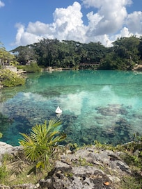 På en privat strand med udendørs pool og tæt på Chankanaab Nationalpark