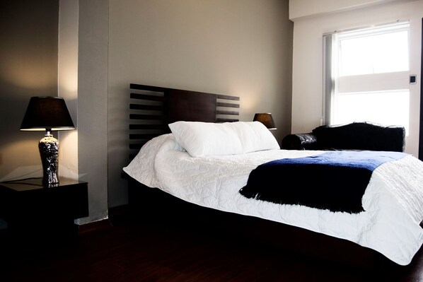 • Luxurious Comfort: Unwind on a premium queen-size bed with high-quality linens for a restful night's sleep.