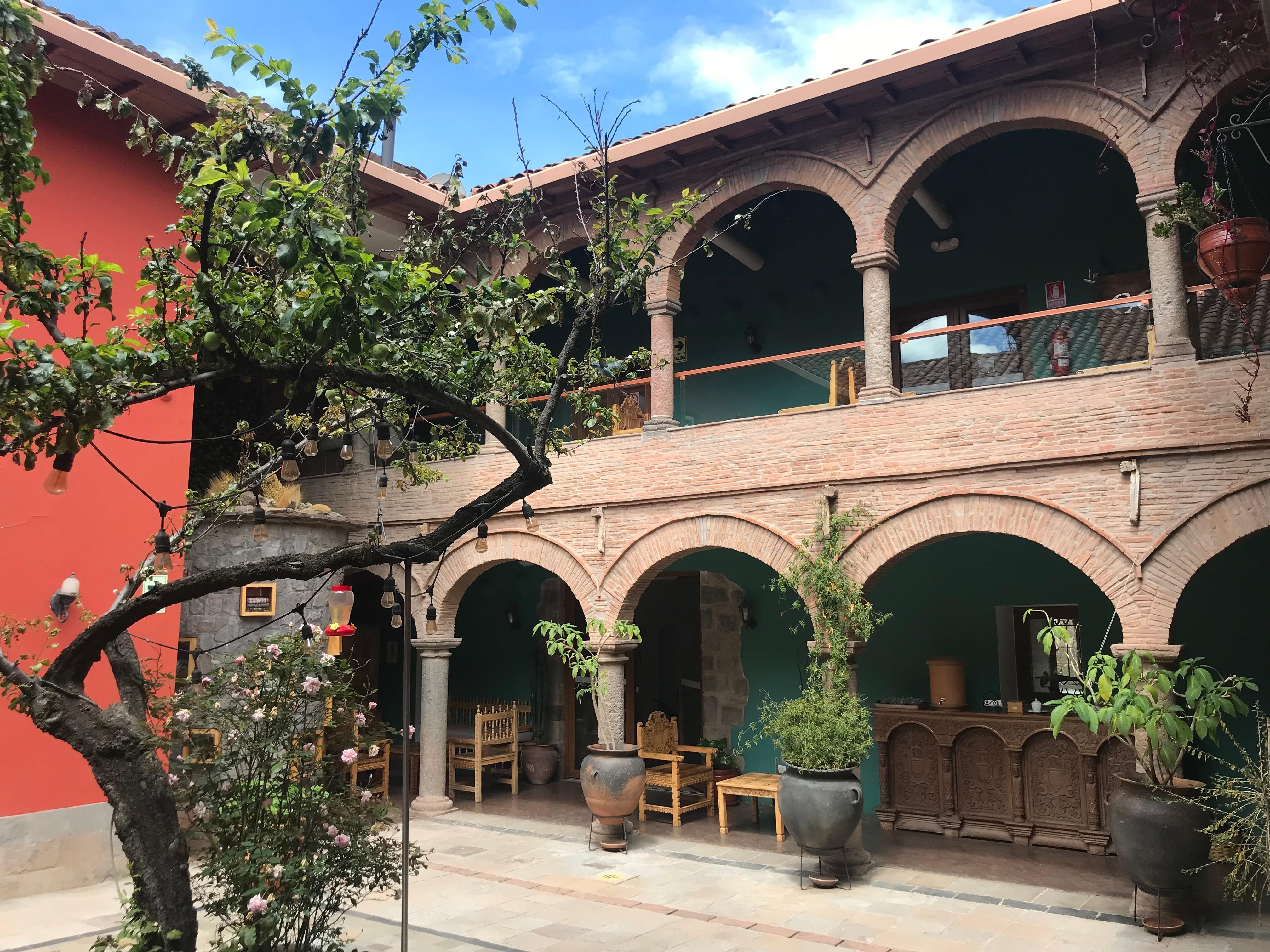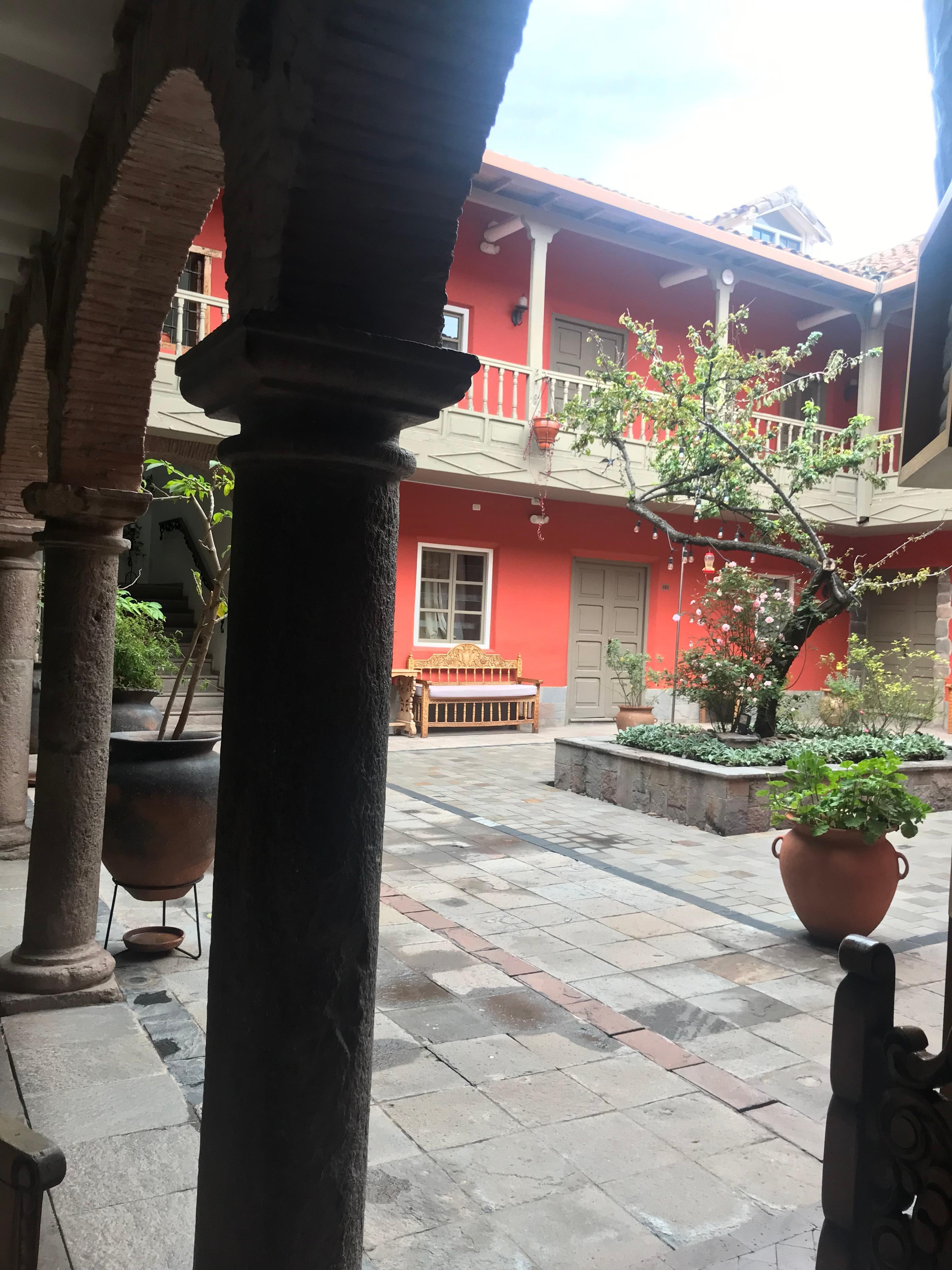 This hotel felt quite comfortable and calm. It was a lovely oasis in the city. There are a few courtyards that were so nice to sit in. I was in a group of 9 people and many of the rooms had bathtubs that the other ladies were very happy about. The rooms were lovely, spacious and clean. The breakfast was great where we were able to order eggs the way we wanted them done and there were choices of many other foods. We could order latte, Americano and cappuccino coffees, which were included in the breakfast. The hotel is located a short walk to the San Pedro Market, and about a 15 minute walk to the Plaza de Armas. It is on a side street which made it quieter, but close enough to restaurants and shops. We stayed in 3 different hotels while in Cusco, and they all had their unique great qualities. This hotel was more upscale and very comfortable.