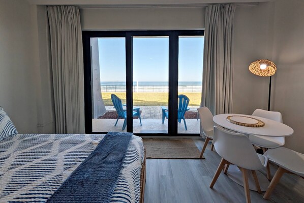 Dette rummelige studie med udstyret tekøkken er smukt dekoreret i beroligende og rolig strandindretning. Den har en king size seng, splinterny sovesofa, fladskærms-tv m / kabel, rundt bordplade til 2 og køkkenbar til 2, køleskab i fuld størrelse, 2 brændeovne, mikroovn, brødrister, blender, kaffe / tefaciliteter og blæser tørretumbler.