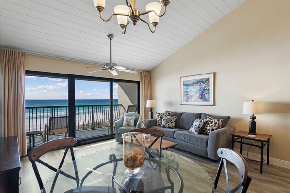 Denne Destin Beach Club Condo er en 840 kvadratmeter, et-værelses enhed, der kan sove op til 6 personer. Det har en stue / spisestue med en terrasse med udsigt over stranden, et fuldt udstyret køkken, en hall bunk alkove, konge soveværelse og en dronning sovesofa.