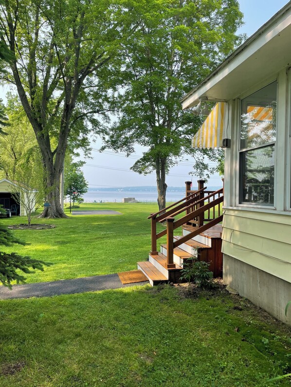 Welcome to our charming lakefront cottage in Dewittville! This 3-bedroom retreat is perfect for families or friends looking to unwind by the water. You'll find a king bed, queen bed, and a cozy bunk bed, ensuring everyone sleeps comfortably. With lake access, a fire pit, lakefront basketball court, dock and even a pool, there's something for everyone to enjoy right on the property.