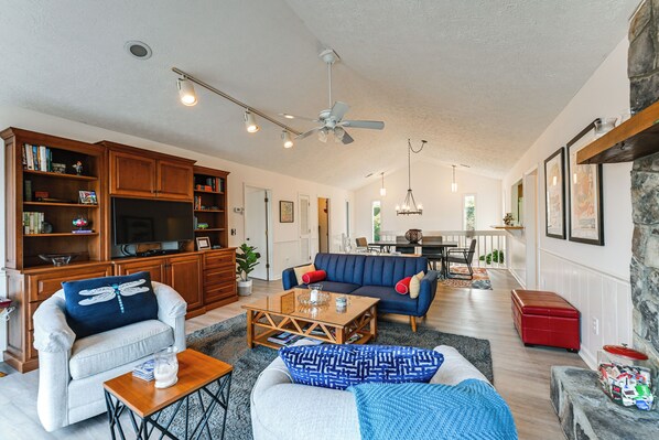 Værelserne på Deck & Community Perks: Sky Valley Home! har aircondition samt pejse og strygejern/strygebræt. Dette feriehus med 3 stjerner har værelser med køkken, der er udstyret med kogeplade, mikrobølgeovn, køkkentøj/tallerkener/redskaber og opvaskemaskine. Badeværelserne omfatter badekar eller bruser.
