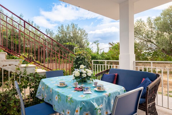 The holiday home boasts a private covered terrace where you can chill out in the evening.