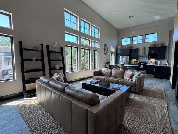 Upstairs, you'll find a large open loft with both a third king bed and a queen sofabed. This room overlooks the beautiful living room and kitchen area below.