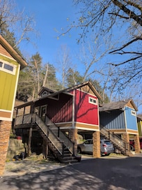 Denne hytte ligger i Eureka Springs Historiske Distrikt, kun 5 minutters gang fra Eureka Springs Music Park Public Restrooms og Magetic Springs Park. Derudover ligger Eureka Springs & Nord Arkansas Jernbane og Harps Doll Museum 10 minutter derfra.