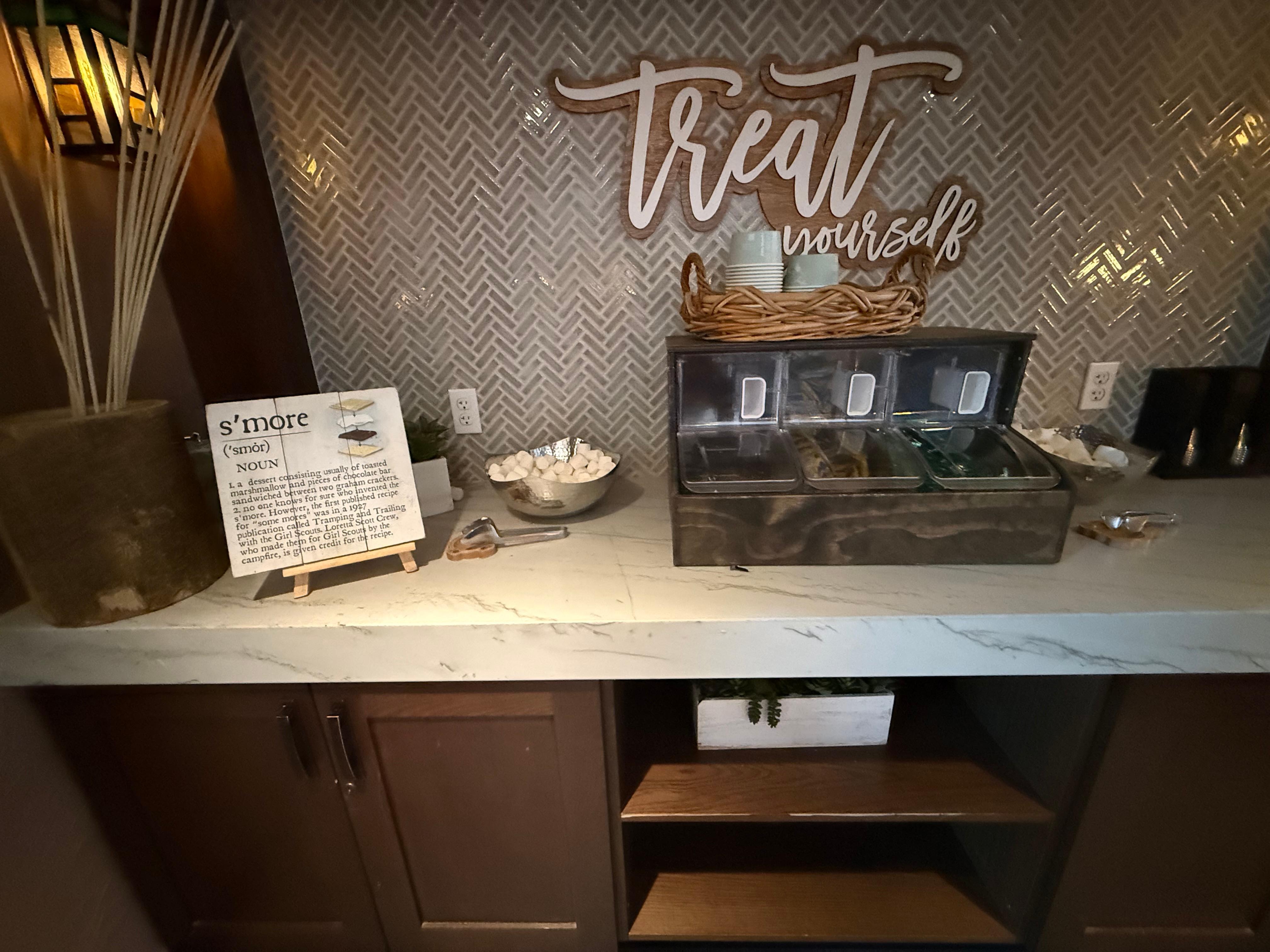 Free smores stuff - chocolate, marshmallows and graham crackers.