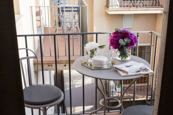 Det første værelse er det første soveværelse til højre for dig. Dette soveværelse har et moderne badeværelse med stort glas-bruseniche og et vindue med udsigt over florentinske hustage.