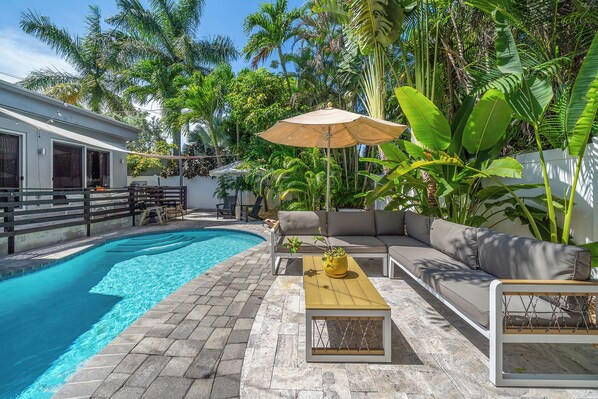Ja, dette overnatningssted har en pool.