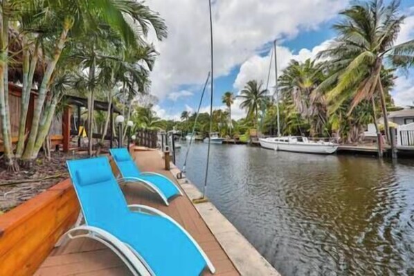 Experience the bliss of this captivating home featuring a stunning tropical-style backyard, a spacious pool, and enchanting canal views that evoke a sense of privacy and a jungle-like ambiance. Nestled in a tranquil neighborhood along the North Fork canal, this residence boasts sixty feet of deepwater dockage, granting effortless access to the ocean without any obstructing bridges. With its proximity to downtown, beaches, Las Olas, I-95, Fort Lauderdale Hollywood International Airport etc.