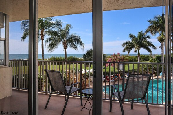 Views of the Gulf help make this 1 bedroom efficiency condo the perfect getaway! Located across from Santini Plaza on the south end of the island, Estero Beach & Tennis 105B is the perfect spot for a couple to relax and enjoy all the island has to offer! ONE DOG ALLOWED WITH PRIOR APPROVAL AND $250 ADDITIONAL PET FEE. (This fee may be added after booking.)