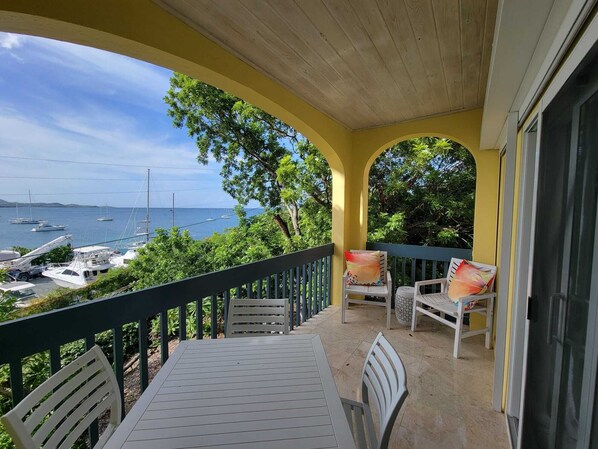 We had a fantastic stay at this Condo! I expressed to the Serenity group we were going to the USVI to celebrate my wife’s birthday and to our surprise as we walked into the condo, there was a beautiful gift with a heartwarming message on a card waiting for her. This was the beginning of a happy birthday for my wife. It truly felt like home away from home. The location was perfect, and the view was amazing. Walking distance from downtown Christiansted, and close to the Ferry over to St. Thomas if desired. The host was wonderful, providing quick communication and helpful local tips. The Condo was very clean, and comfortable, with spacious rooms and thoughtful touches like beach towels, and instructions for use of audio and visual equipment which made our trip even more enjoyable. We would definitely recommend this place and look forward to coming back.