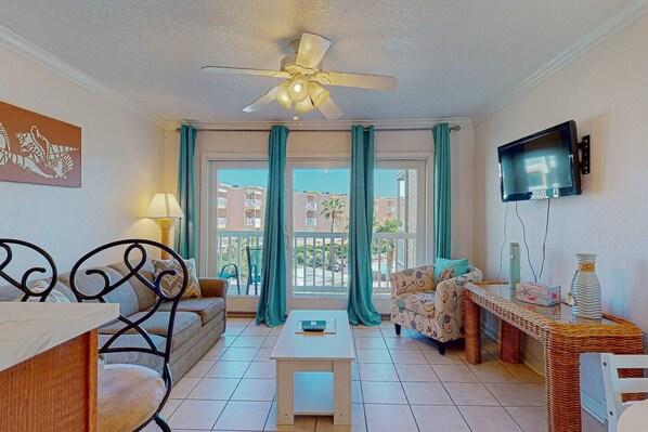 It's clean, it's fresh, it's inviting and welcoming and it's priced right! Come Stay With Us and experience the service difference you receive when this property's owner has hired a professional property management company who takes customer service as # 2 only to your safety. While you're in the condo you have 2 TV's to choose from (bedroom and living room) - or take 2 steps outside to the balcony that overlooks one of the complex pools (the heated one) and views to the gulf. Enjoy your morning coffee and watch the sunrise, or an evening beverage of your choice. Watch the waves, the birds, the sky change and plan tomorrow's activities. All while barefootin'!