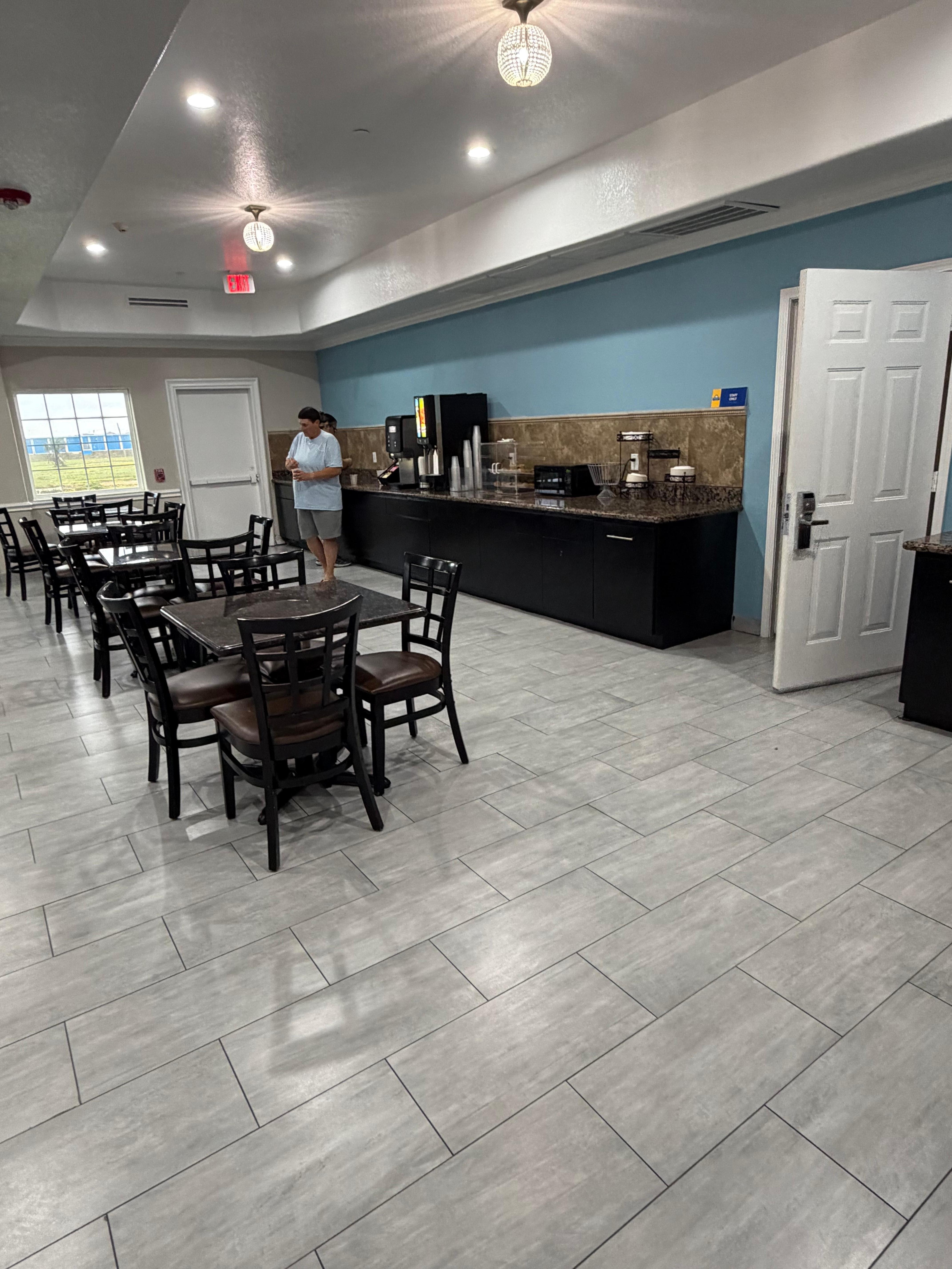 Distort off the property was relatively clean. Now the room that we stayed in was relatively clean. The shower and sink water pressure was terrible. I could poured water on myself with more pressure to rinse off.. the staff was extremely rude when we brought up the problem. Now I’m not sure exactly what breakfast is supposed to look like but it is not just coffee juice and mini muffins. There was supposed to be a free continental breakfast. There was no breakfast. I’m sorry many muffins, coffee and juice. I spent on them $450 for the two nights this is unacceptable.