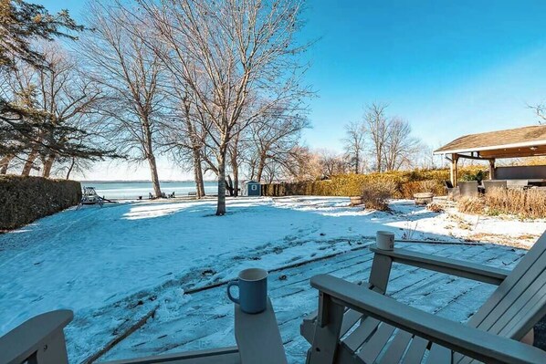 - Huge fire pit area surrounded by Muskoka chairs directly at the waterfront!