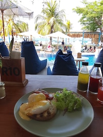 - Gebyr for morgenmad tilberedt efter bestilling: Mellem 70000 og 150000 IDR for voksne og mellem 70000 og 150000 IDR for børn (cirkapriser)
