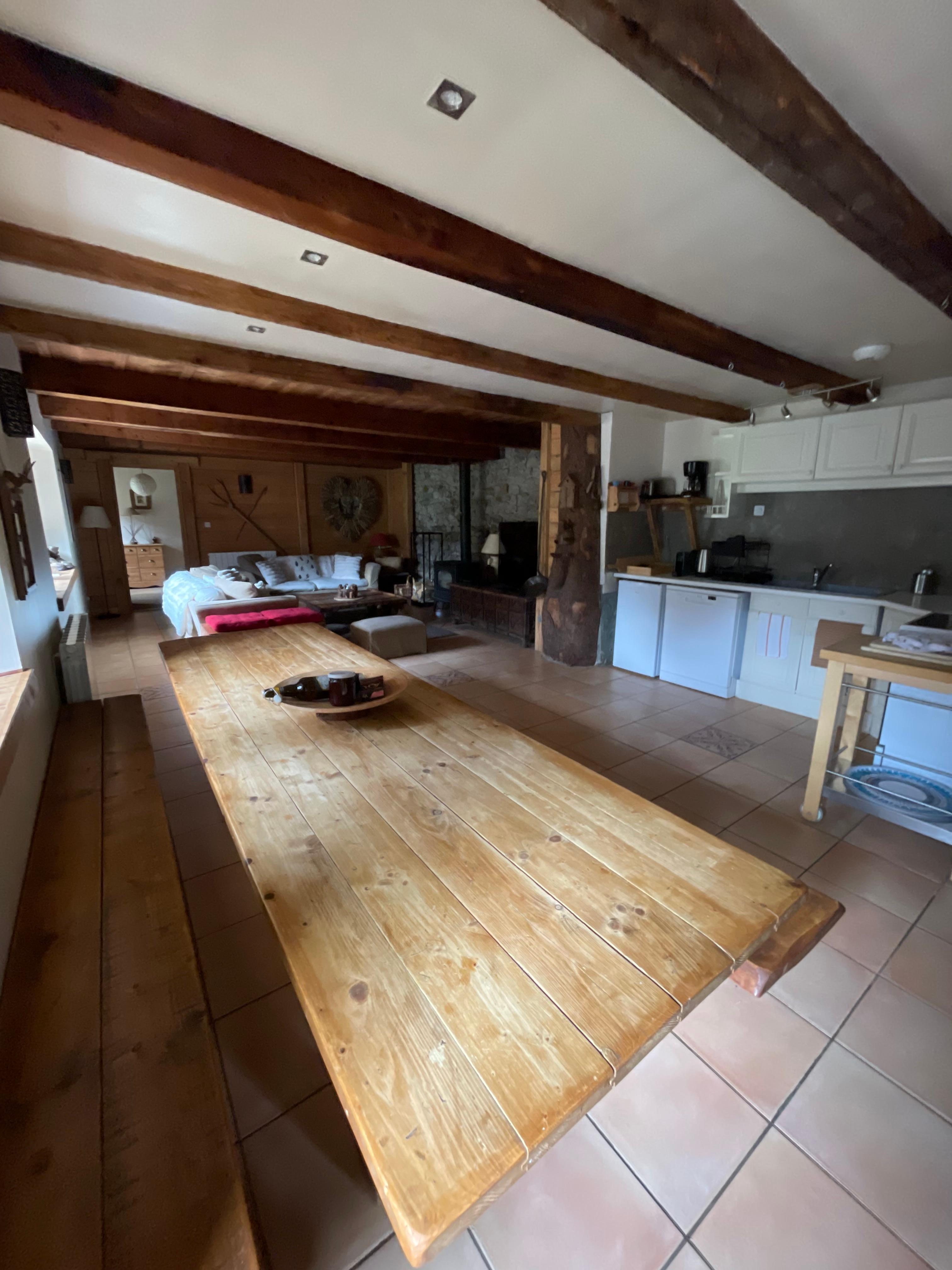 Det rummelige fællesrum vil vinde alle stemmer, med sine synlige bjælker, sin helt nye komfur, dens møbler af karakter og dens bjergindretning.