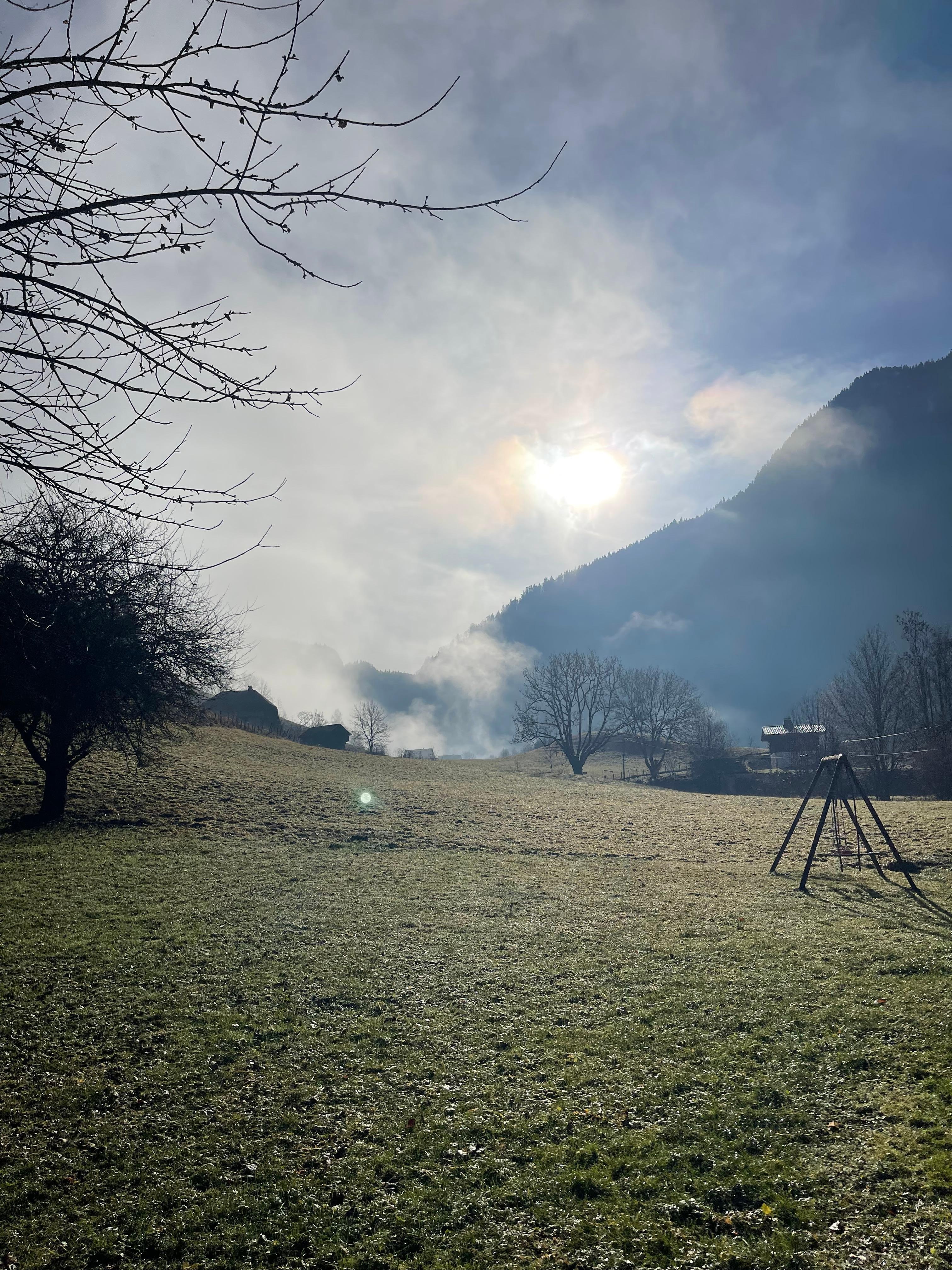 Huset ligger i hjertet af naturen (men tæt på butikker), foran jeres eng, så langt øjet kan se og bjerget rundt omkring dig på 360 °.