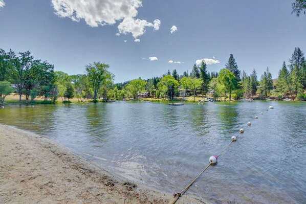 Vandadgang: Når du er i Pine Mountain Lake-samfundet, giver dit parkeringskort dig adgang til strandområder og fællesskabsbassinet. Der er tre strande: Marinaen, der ligger uden for Cassaretto Court, Lake Lodge ligger på Pine Mountain Drive, nær Cresthaven Drive og Dunn Court Beach, der ligger ved Dunn Court. Svømning er kun tilladt inden for de udpegede områder. På privat lakefront ejendom, er svømning begrænset til inden for 30 meter (30) af kysten eller private dock. Venligst vis dit parkeringskort, hvis du besøger et af disse områder. Parkering på Marina Beach parkeringsplads er ikke tilladt fredag, lørdag eller søndag og er forbeholdt boligejere. Der er ingen hunde tilladt på strand steder. Strande kan også nås via vandtaxi, der rejser fra en strand til den næste. Ring venligst Pine Mountain Lake med eventuelle spørgsmål: (209) 962-8615. Selvom ferieboliger ikke kan medbringe både af nogen art til søen, er der udlejningsbåde til rådighed i Marina butik. Ring venligst Pine Mountain Lake Marina, på 209) 962-8631 eller besøg http: // www. pinemountainlake. com / 1marina-test-side / for mere information. BEMÆRK, COMMUNITY SWIM CENTER ER SÆSONG / LUKKET NOV-APRIL.