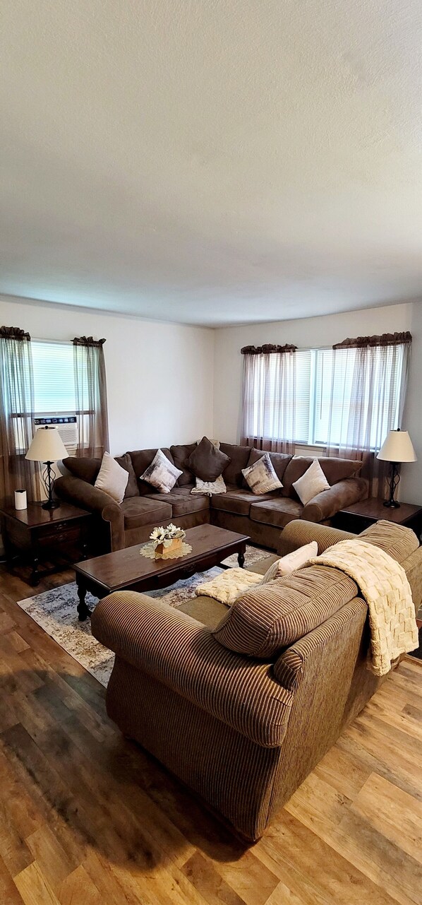 Enjoy a comfortable stay in this cozy ranch style duplex nestled on an acre lot in Hamilton, less than 2 miles from Colgate University. This unit has 2 large bedrooms with queens beds, 2 convertible chairs, 1 large bath, 1 spacious living room, a fully equipped kitchen, and dinette area. Each unit has new plumbing, electrical, bathroom, and appliances. Amenities include WIFI, HDTV / Smart TV, electric fireplace, tower fans, A/C, games, ample parking, spacious side / front / back yards, BBQ grill, picnic table, Adirondack chairs, linens, hair dryer, iron and ironing board, as well as travel guides to nearby destinations (Madison County attractions: parks /lakes /waterfalls / hiking trails, Cooperstown, Finger Lakes area, etc.). The unit can accommodate 4-6 comfortably. This home offers the convenience of being located near the charming Village of Hamilton with the benefits of a private home tucked on a lush acre surrounded by local farms and three state forests. This cute and cozy unit is guaranteed to be just right.