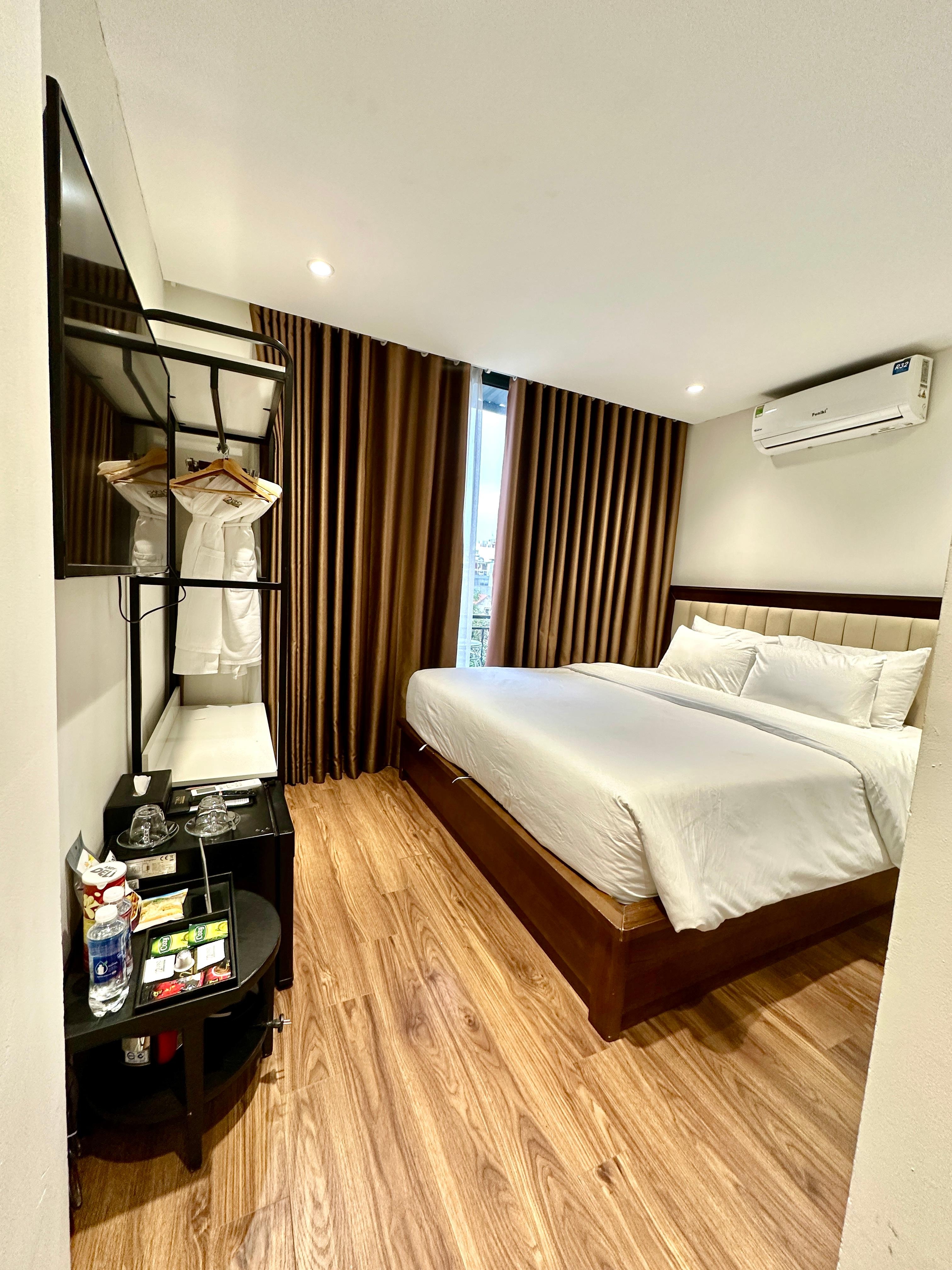Had a good stay in 22land during my short New Year vacation. Glad to see the fireworks at my balcony! The area is very convenient and near to some famous food shops, Cathedral, lake and many souvenir shops. The room is quite small but clean. The toilet/bath do not have a partition, complete accessories like hot water, bidet, toothbrush/toothpaste, comb, etc & hair dryer. The breakfast is with limited selection but decent and i would like to highlight that their beef PHO is quite nice! Tasty broth, thin-smooth noodles and generous serving of beef. Staff are all friendly.