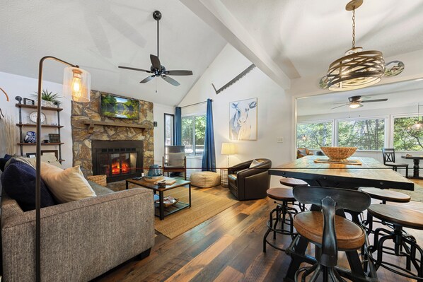 • Living area with fireplace & Roku Smart TV
